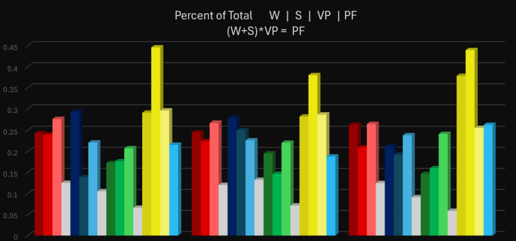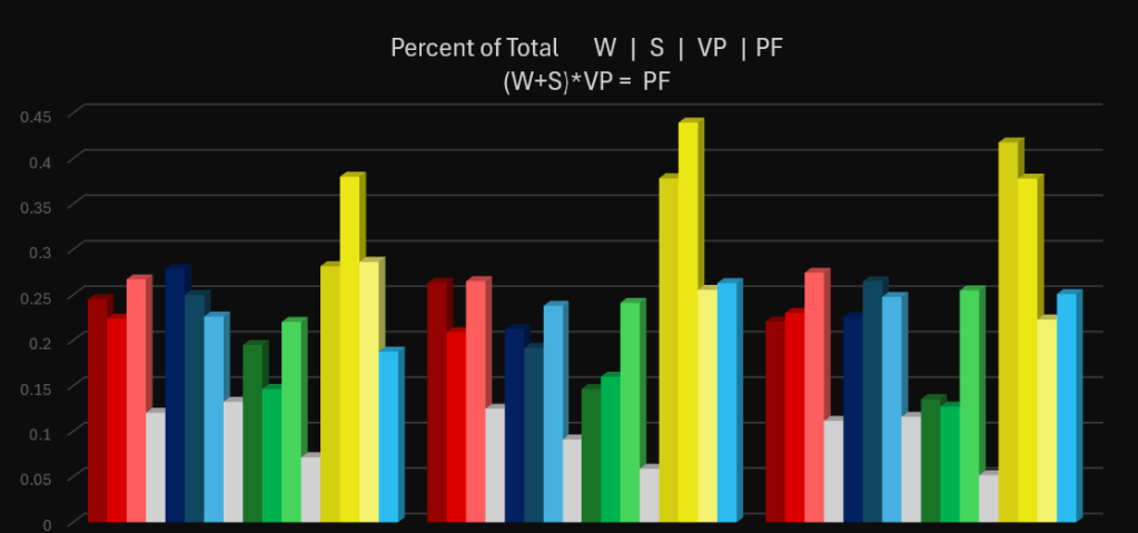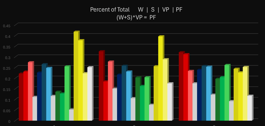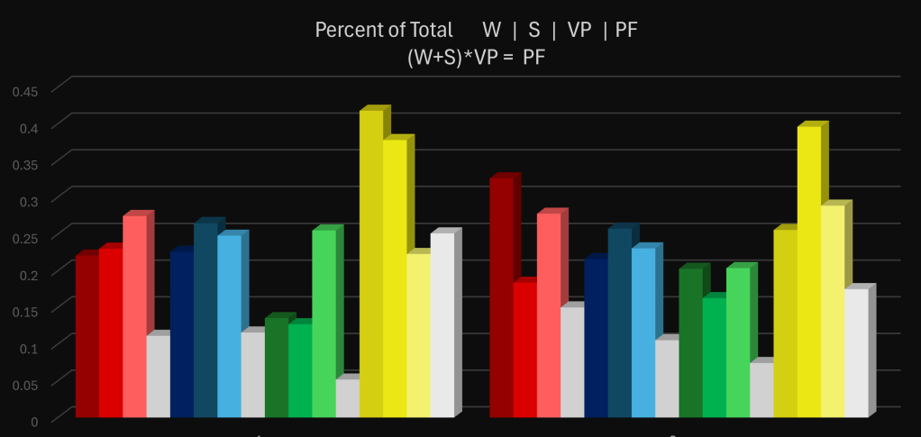 I manually added up ticks towards the end, here’s how that was looking. These are top contributors on each team. Differential is average ticks per player held above team that used most time. Some of these numbers seemed consistent, others were skewed, so it’s not entirely accurate each source, but can be a good mean over an extended period.